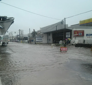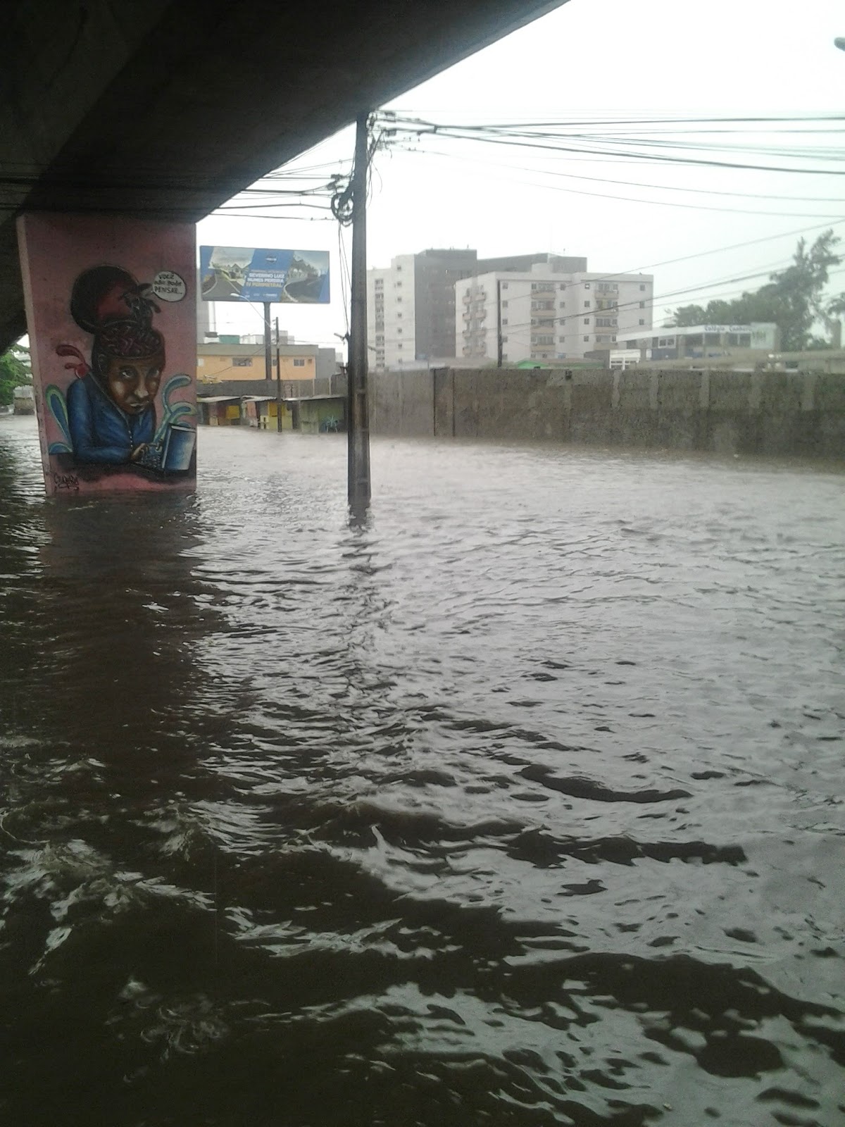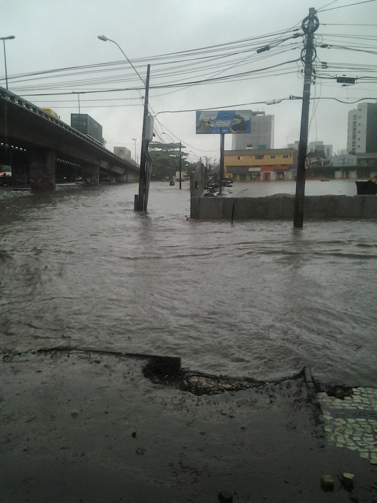 Nos últimos anos, esse trecho da Av. Caxangá só fica nesta situação com fortes chuvas e demoradas como foram as de hoje. O problema crônico desse trecho do viaduto se dá pela topografia do local. O cruzamento da avenida com o viaduto é o centro de um funil, pois a avenida como as vias locais da BR 101 estão em declive para o mesmo ponto, sendo assim há uma natural tendência da água no entorno ser direcionada para aquele local. Some galerias entupidas e com dimensionamento ultrapassado, um canal que corta a BR 101 no lado do Detran.